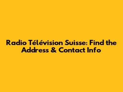 Radio Télévision Suisse: Find The Address & Contact Info