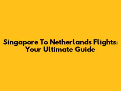 Singapore To Netherlands Flights: Your Ultimate Guide