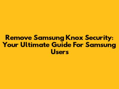 Remove Samsung Knox Security: Your Ultimate Guide