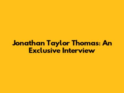 Jonathan Taylor Thomas: An Exclusive Interview