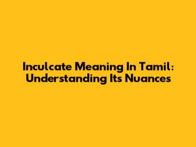 Inculcate Meaning In Tamil: Understanding Its Nuances