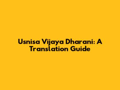 Usnisa Vijaya Dharani: A Translation Guide