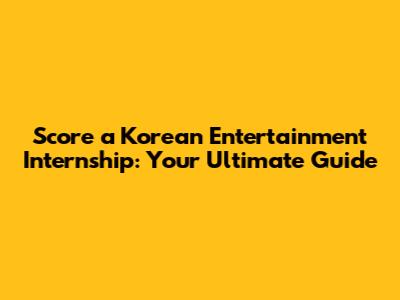 Score A Korean Entertainment Internship: Your Ultimate Guide