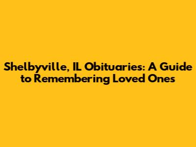 Hey there, folks! If you're looking for information on Shelbyville, IL obituaries, you've landed in the right spot. Dealing with the loss of someone is never easy, and finding the right resources can feel overwhelming. This guide is designed to help you navigate the world of obituaries in Shelbyville and beyond. We'll explore where to find them, what information they typically include, and how to use them to honor the lives of those we've lost. So, grab a coffee (or your beverage of choice), and let's dive in. This article is your go-to resource for understanding and accessing Shelbyville IL obituaries and related information. We'll cover everything from recent death notices to historical records, helping you piece together the stories of those who have shaped the community. The goal is to provide a comprehensive overview, making it easier for you to find what you need during a difficult time. Remember, you're not alone, and there's a wealth of support and information available to help you through this. We are here to help you get started with your journey.