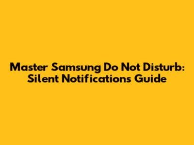 Master Samsung Do Not Disturb: Silent Notifications Guide