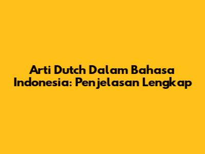 Arti "Dutch" Dalam Bahasa Indonesia: Penjelasan Lengkap