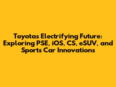 Hey guys! Let's dive into the exciting world of Toyota and explore their innovative lineup, including the PSE, iOS, CS, eSUV, and sports car models. Toyota is a brand synonymous with reliability, innovation, and a commitment to pushing the boundaries of automotive technology. From their eco-friendly initiatives to their high-performance vehicles, Toyota has something for everyone. In this article, we'll break down each of these categories and see what makes them special. We will cover the future plans, current models, and what we can expect from Toyota in the coming years. Buckle up, because it's going to be an electrifying ride!