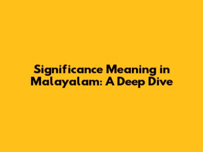 Understanding 'Significance': Meaning In Malayalam