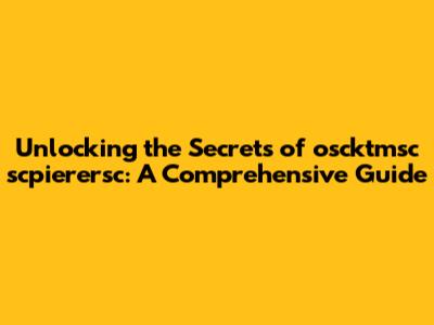 Unlocking The Secrets Of Oscktmsc Scpierersc: A Comprehensive Guide