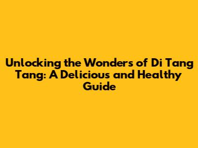 Unlocking The Wonders Of Di Tang Tang: A Delicious And Healthy Guide