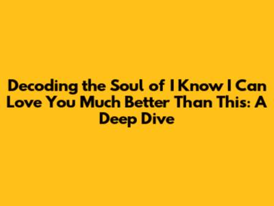 Unpacking 'I Know I Can Love You Much Better Than This' Lyrics