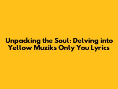 Unpacking The Soul: Delving Into Yellow Muzik's 'Only You' Lyrics