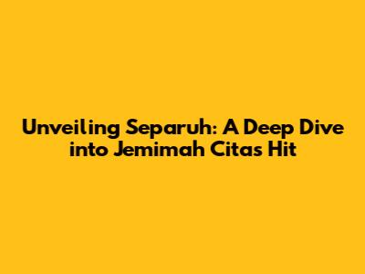Hey guys! Let's dive deep into a seriously awesome song: "Separuh" by the incredibly talented Jemimah Cita. This track isn't just a catchy tune; it's a whole vibe, a journey through emotions, and a testament to Jemimah's musical prowess. We're going to break down everything from the lyrics and the meaning to the killer music video and the overall impact of this song. So, grab your headphones, get comfy, and let's explore the world of "Separuh"!