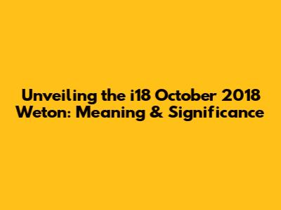 Unveiling The I18 October 2018 Weton: Meaning & Significance