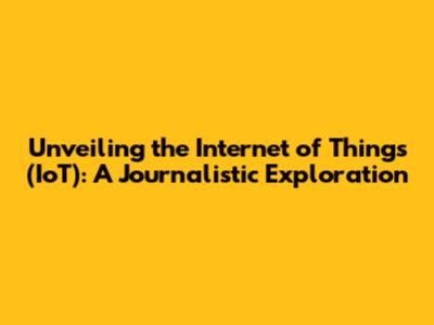 Unveiling The Internet Of Things (IoT): A Journalistic Exploration