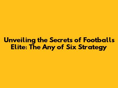 Unveiling The Secrets Of Football's Elite: The 'Any Of Six' Strategy