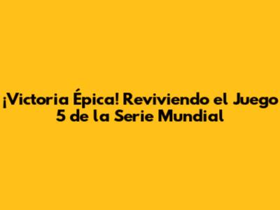 ¡Victoria Épica! Reviviendo El Juego 5 De La Serie Mundial
