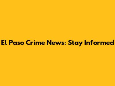 El Paso Crime News: Stay Informed