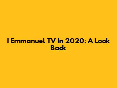 I Emmanuel TV In 2020: A Look Back